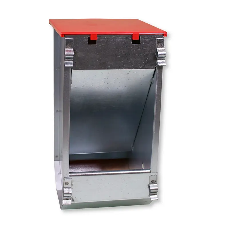 Cette mangeoire pour lapins offre une seule place d’alimentation. Elle est fabriquée en tôle galvanisée durable. Le couvercle supérieur est en plastique résistant.